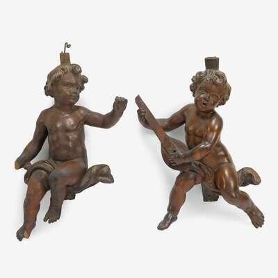 Two carved wooden Cherub carousel figures philadelphia toboggan company, germantown, philadelphia, pa, early 20th century