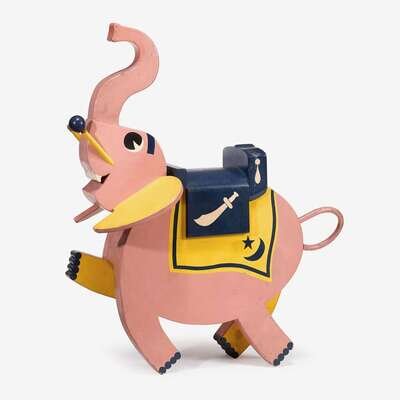 Painted "Kiddie" carousel elephant and drawing philadelphia toboggan company, germantown, philadelphia, pa, circa 1940