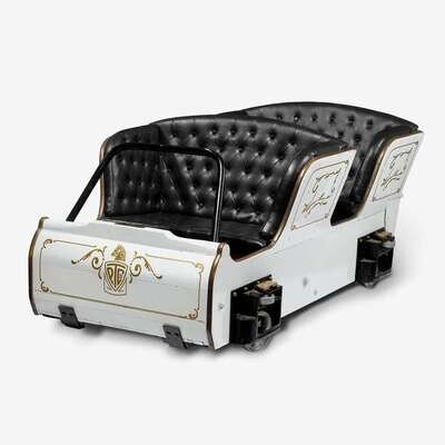 Painted and gilt-decorated oak, iron, and brass trimmed Coaster Car philadelphia toboggan company, germantown, philadelphia, pa, 1902