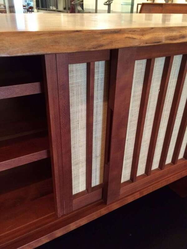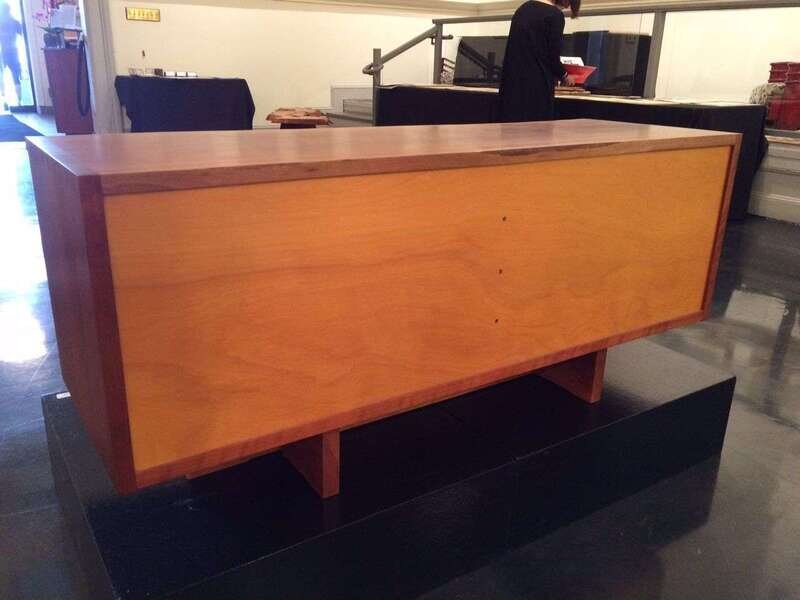 Cherry and pandanus cloth. Signed and dated "George Nakashima March 9, 1984."