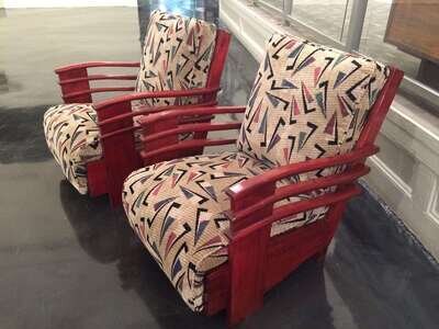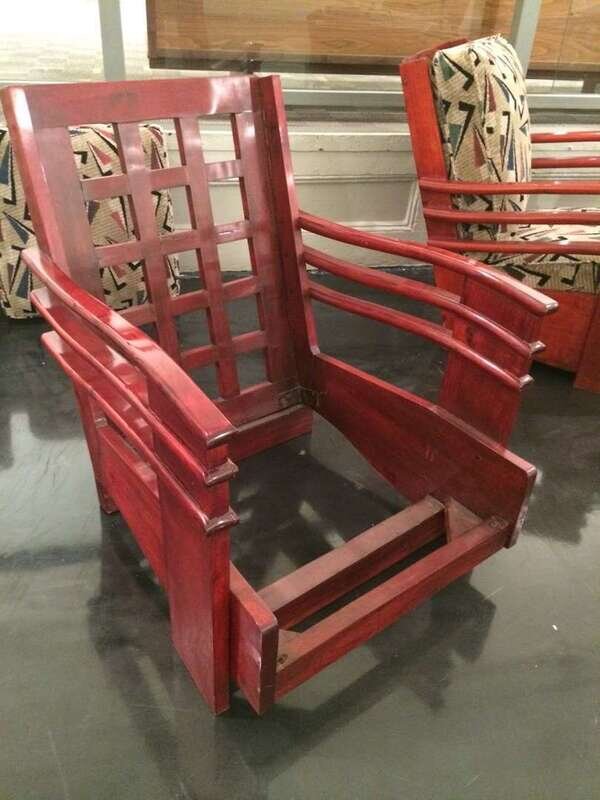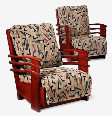 Pair of Art Deco mahogany lounge chairs from the Normandie Hotel, San Juan, Puerto Rico circa 1938