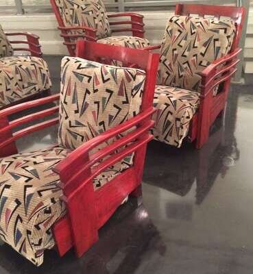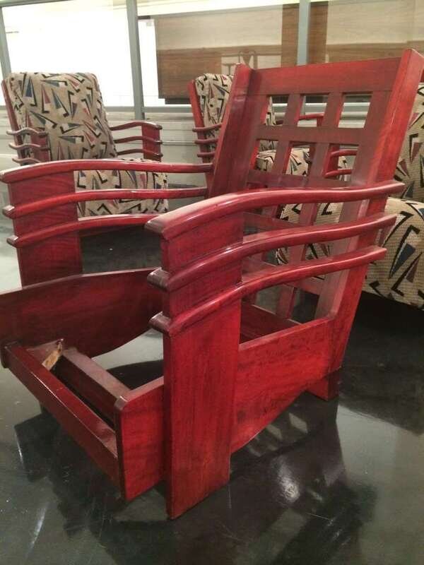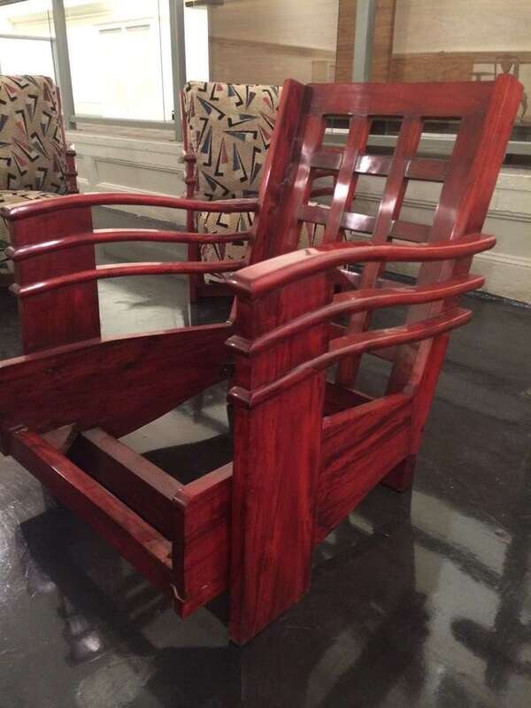 Pair of Art Deco mahogany lounge chairs from the Normandie Hotel, San Juan, Puerto Rico circa 1938