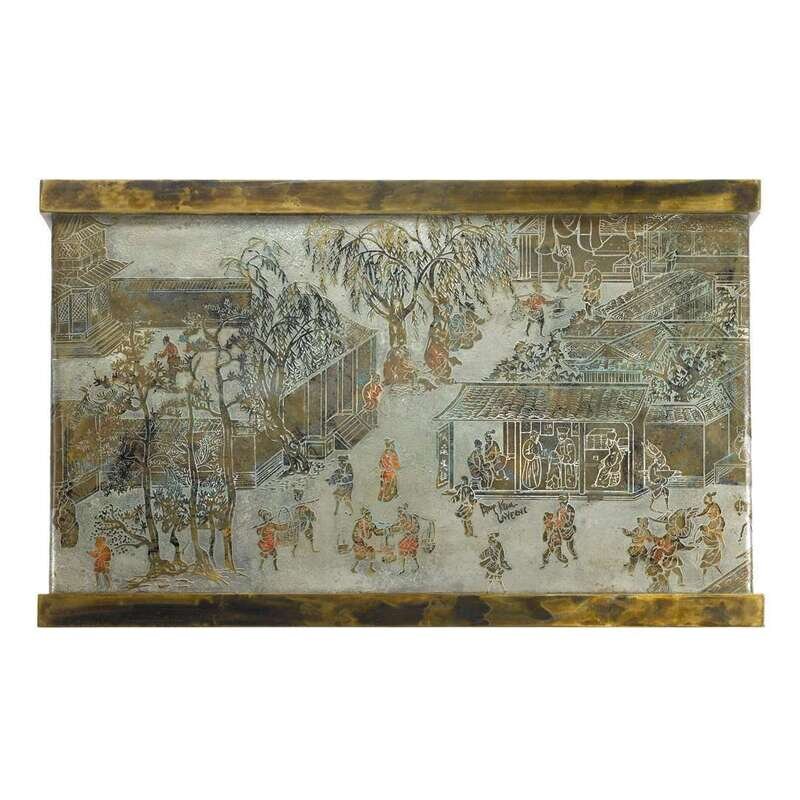 Patinated bronze and pewter. Acid-etched signature in relief with paper gallery label to underside.