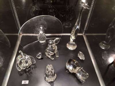 Group of six crystal animal figurines steuben glass, corning, ny, 20th century