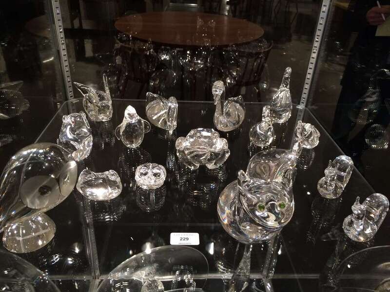 Large group of crystal animal figurines steuben glass, corning, ny, 20th century