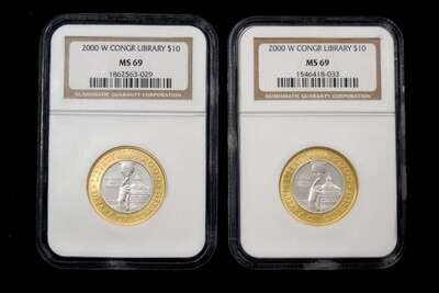 Two 2000 US W Congr Library $10 Platinum and Gold NGC Graded Coins