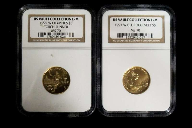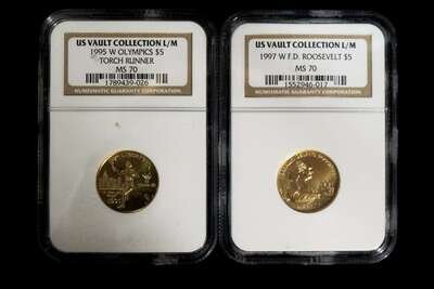 1995 W Olympics Torch Runner and 1997 E F.D. Roosevelt US $5 NGC Graded Gold Coins