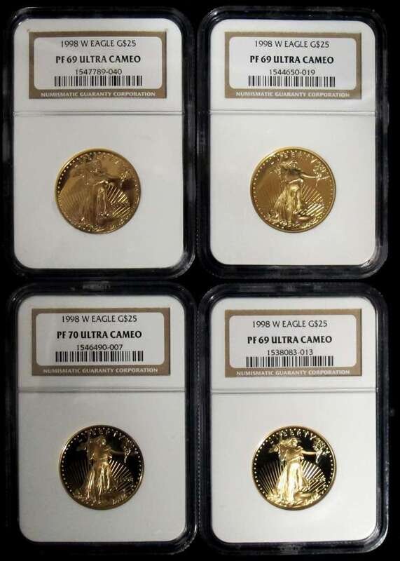 Four 1998 W Eagle $25 NGC Graded Gold Coins