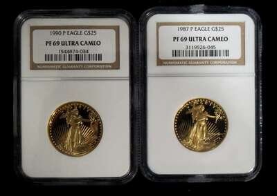1987 and 1990 US P Eagle $25 Gold NGC Graded Coins