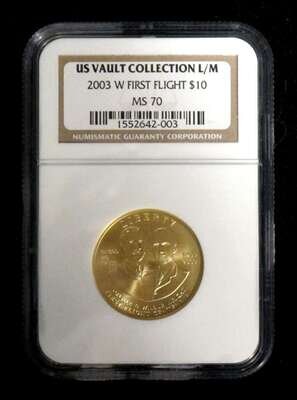 US Vault Collection L/M 2003 W First Flight $10 Gold NGC Graded Coin