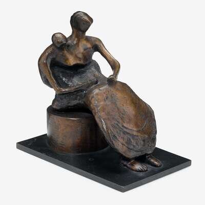 HENRY MOORE (BRITISH, 1898-1986) "SEATED MOTHER AND CHILD"