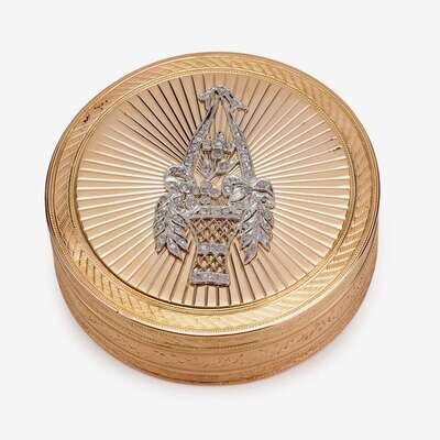 Continental diamond-set and engraved gold pill box