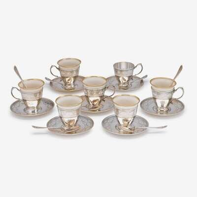 Seven sterling silver demitasse cups and saucers Tiffany & Co., New York, NY, circa 1911