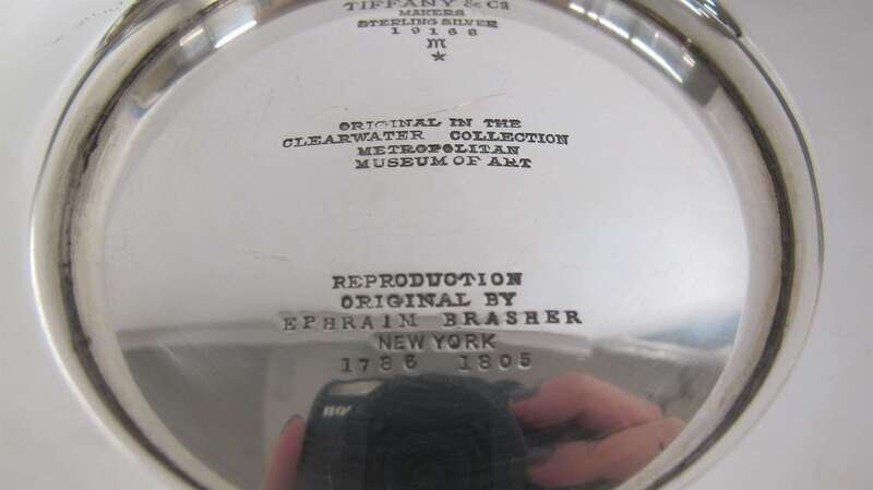 Plain circular form raised on stepped circular foot, the underside with Tiffany & Co. hallmarks and engraved "Original in the Clearwater Collection Metropolitan Museum of Art/Reproduction original by Ephraim Brasher New York 1786 1805."