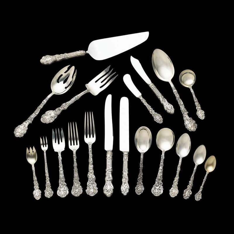 Sterling silver flatware service F. Antoine Heller for Gorham Mfg. Co., Providence, RI, 1888