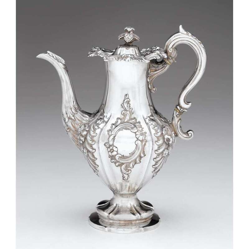 Large Scottish Victorian silver coffee pot Leonard Urquhart, Edinburgh, 1844-45