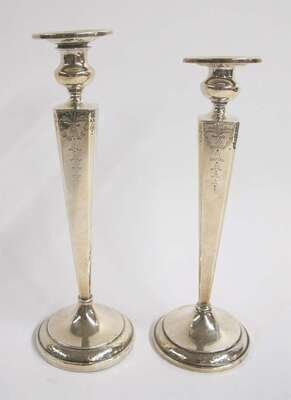 Two sterling silver candlesticks J. Wagner & Sons, New York, NY, mid 20th century