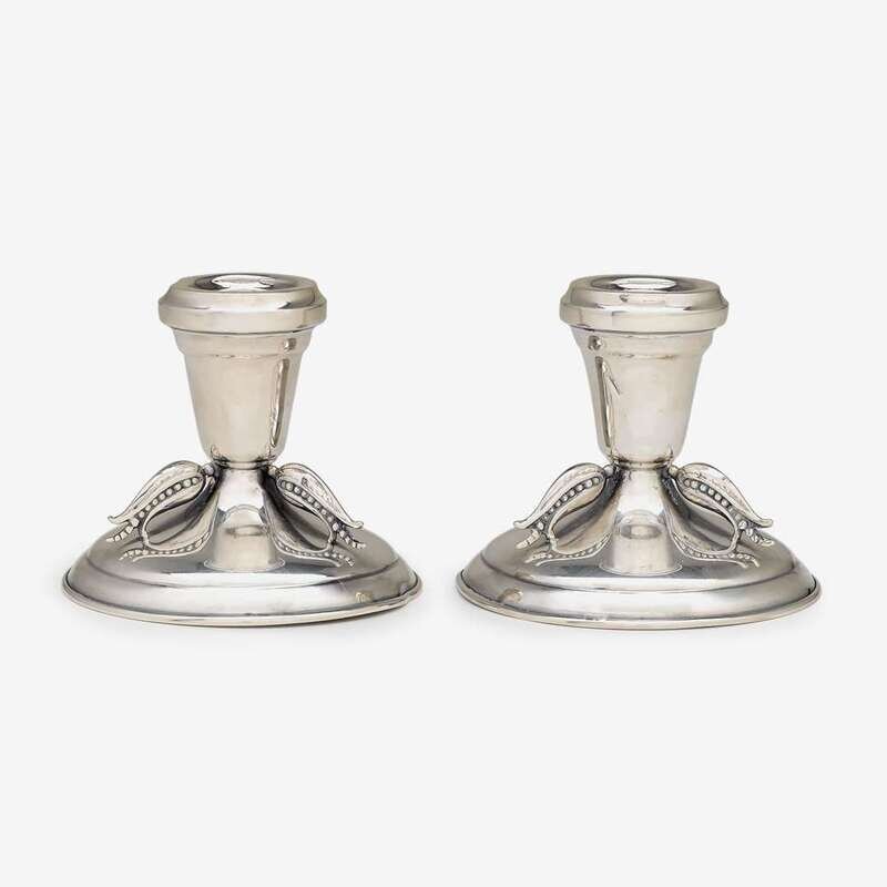 Pair of Canadian sterling silver candlesticks Carl Poul Petersen, Montreal, mid 20th century