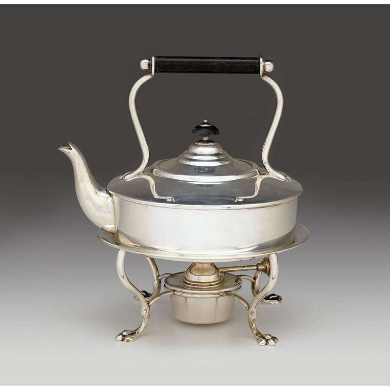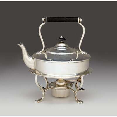 George V silver hot water kettle on stand Hukin & Heath Ltd., Birmingham, 1911-12