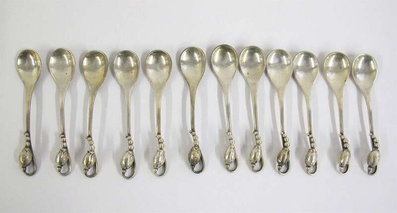 "Blossom" pattern, marked "Georg Jensen & Wendel a/s"/"Sterling Denmark." (12).
