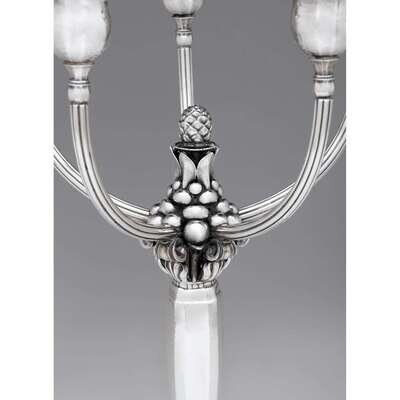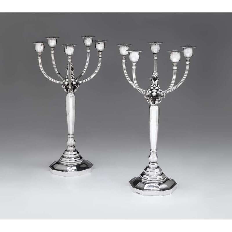 Fine pair of Danish silver five-light candelabra designed by Johan Rohde for Georg Jensen, Copenhagen, 1945-77