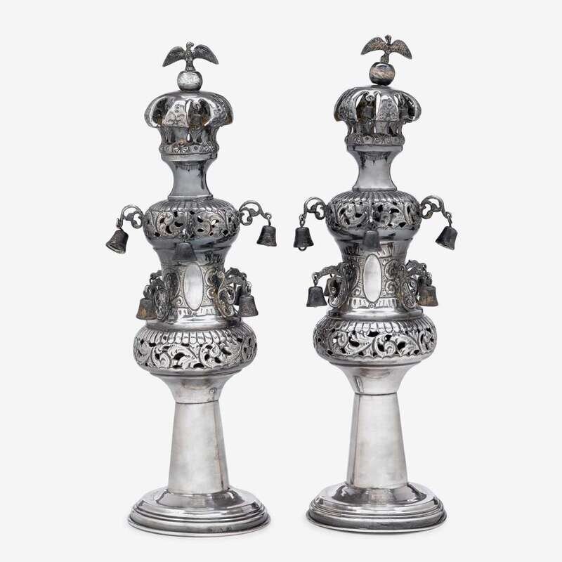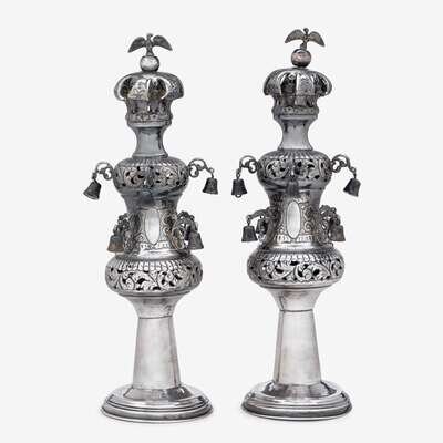 Pair of Continental silver torah finials circa 1900