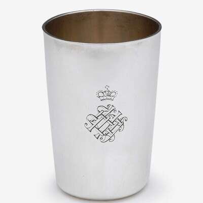 Cylindrical form, with engraved monogram to body below a crown, 84 zolotnik.