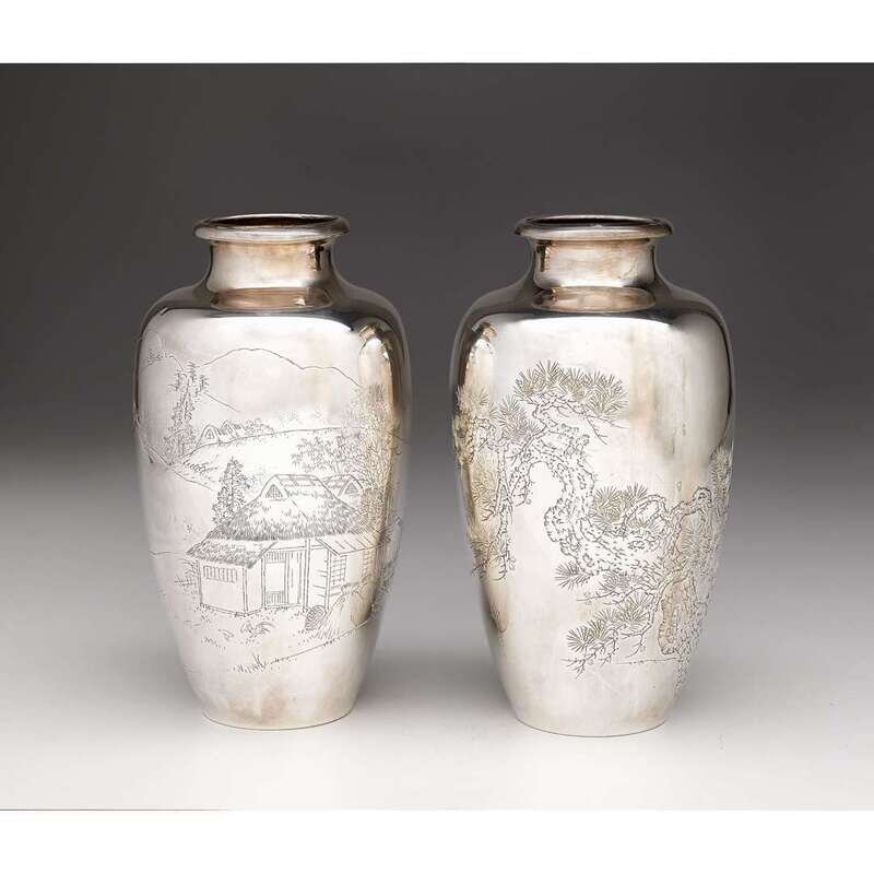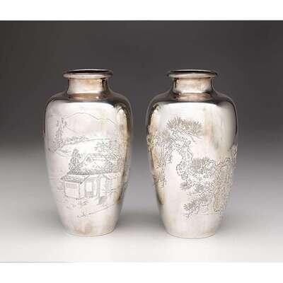 Pair of Japanese silver vases early 20th century