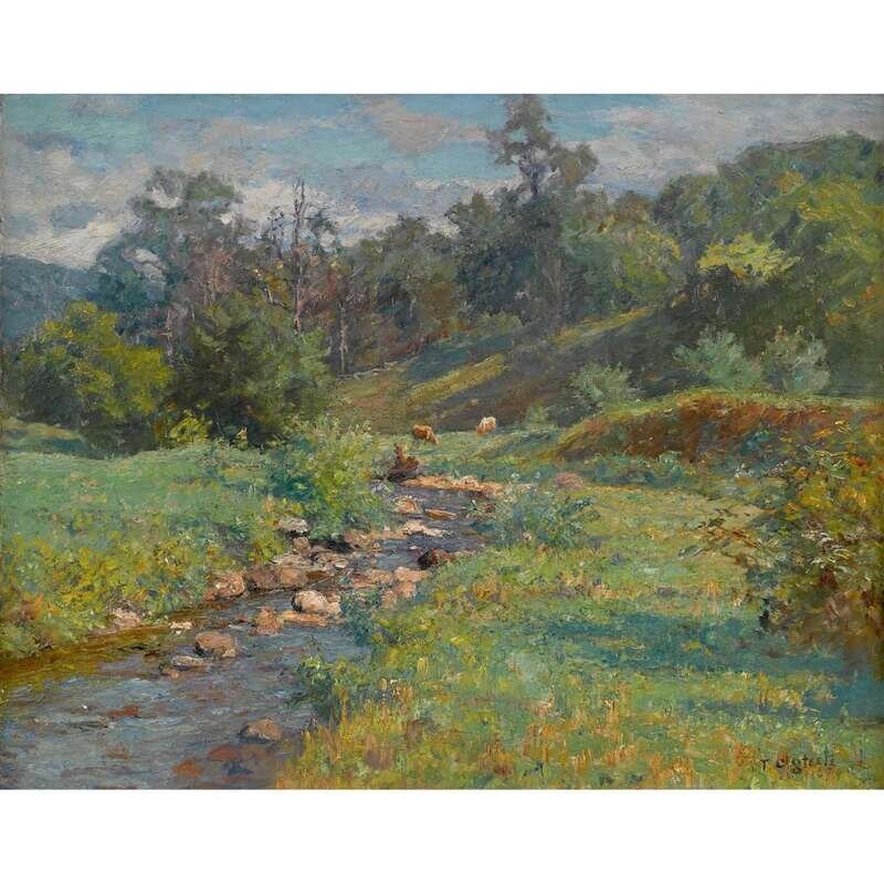THEODORE CLEMENT STEELE (AMERICAN 1847-1926) COWS WATERING BY A STREAM
