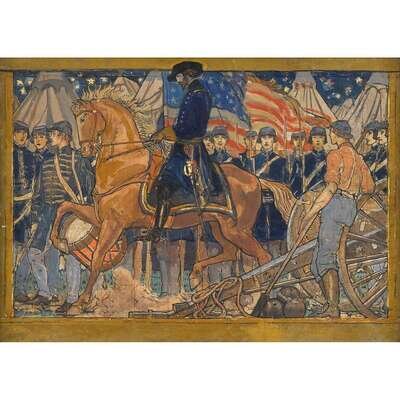 VIOLET OAKLEY (AMERICAN 1874-1960) "GENERAL MEADE AND PENNSYLVANIA TROOPS IN CAMP BEFORE GETTYSBURG"