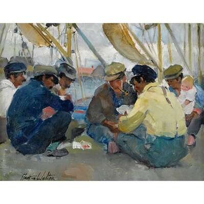 MARTHA WALTER (AMERICAN 1875-1976) "CARD GAME ON ITALIAN DOCKS AT GLOUCESTER"