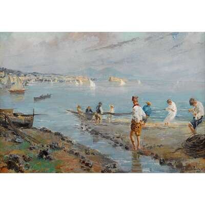 GIOVANNI PANZA (ITALIAN 1894-1989) PULLING THE CANOE ASHORE