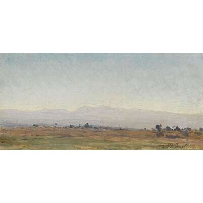 AUGUSTE (FRANÇOIS AUGUSTE) BONHEUR (FRENCH 1824-1884) LANDSCAPE WITH VIEW OF LOW LYING MOUNTAINS