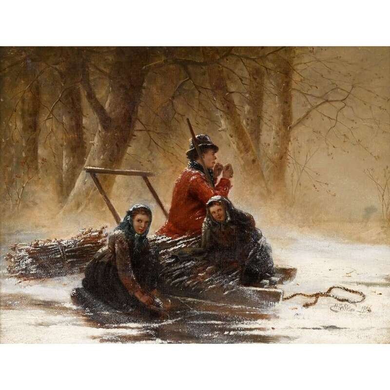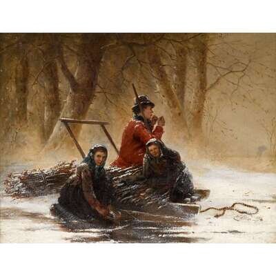 HENRI VAN SEBEN (BELGIAN 1825-1913) GATHERING WOOD