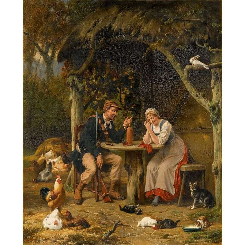 EUGENE RÉMY MAES AND JAN DAVID COL (BELGIAN 1849-1931) AND (BELGIAN 1822-1900) OFFICER AND MAIDEN