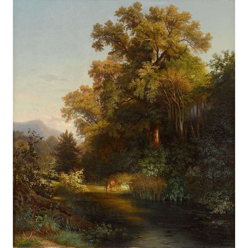 SÁNDOR BRODSZKY (HUNGARIAN 1819-1901) DEER WATERING