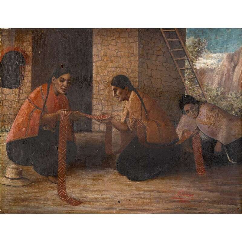 MARIO URTEAGA ALVARADO (PERUVIAN 1875-1957) WOMEN MAKING TEXTILES