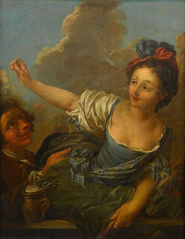 AFTER FRANÇOIS BOUCHER (FRENCH 1698-1770) LADY BLOWING BUBBLES WITH ATTENDANT