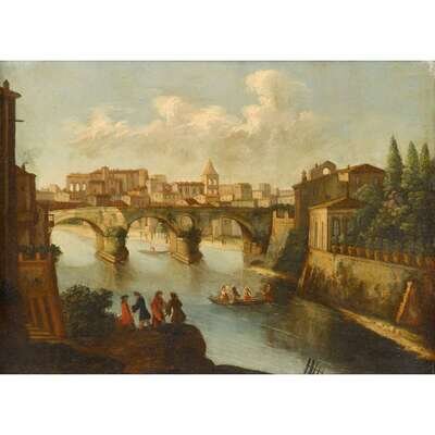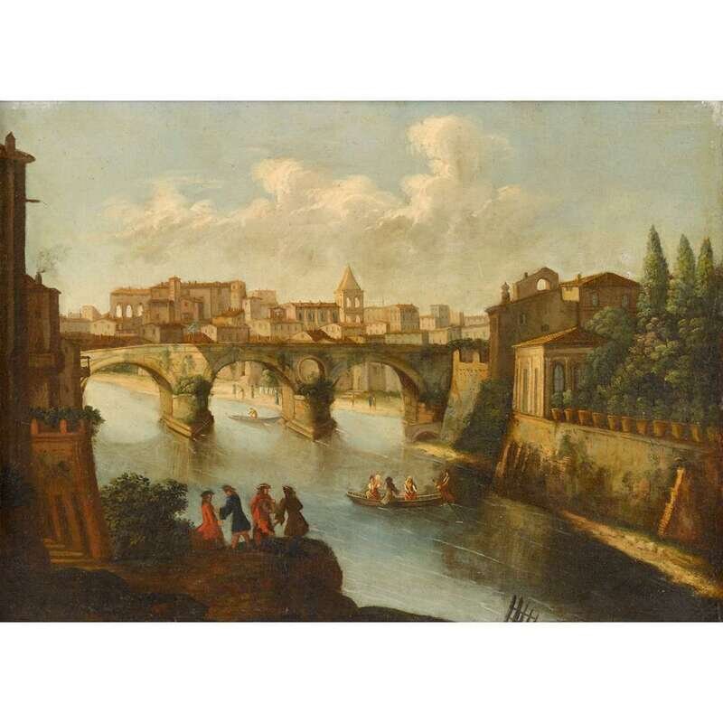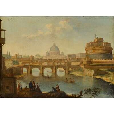 MANNER OF GASPAR VAN WITTEL (FLEMISH CA. 1653-1736) A VIEW OF THE TIBER RIVER WITH CASTEL SANT' ANGELO AND SAINT PETER'S IN THE DISTANCE; AND A COMPANION