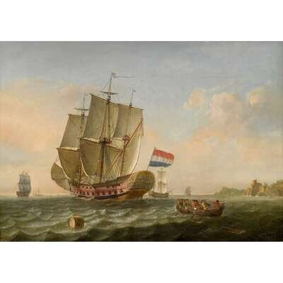 FOLLOWER OF REINER NOOMS, CALLED ZEEMAN (DUTCH 1623-1664) SHIPPING IN A CALM