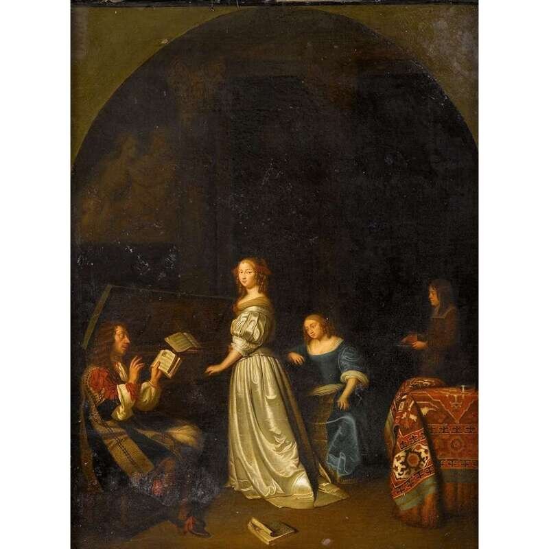 LEIDEN SCHOOL (LATE 18TH CENTURY) ELEGANT LADY IN AN INTERIOR