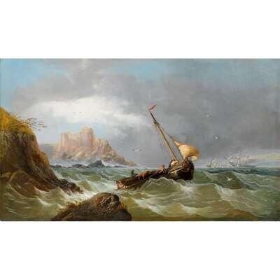 JAMES WEBB (BRITISH 1825-1895) FISHER BOAT IN ROUGH SEAS