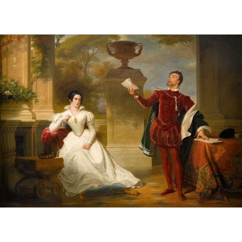 BRITISH SCHOOL (19TH CENTURY) READING THE LETTER; POSSIBLY MALVIOLO AND OLIVIA FROM SHAKESPEARE'S "TWELFTH NIGHT"