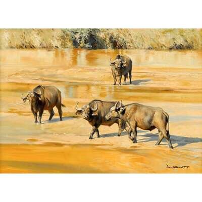 DONALD GRANT (BRITISH 1930-2001) WATER BUFFALOES
