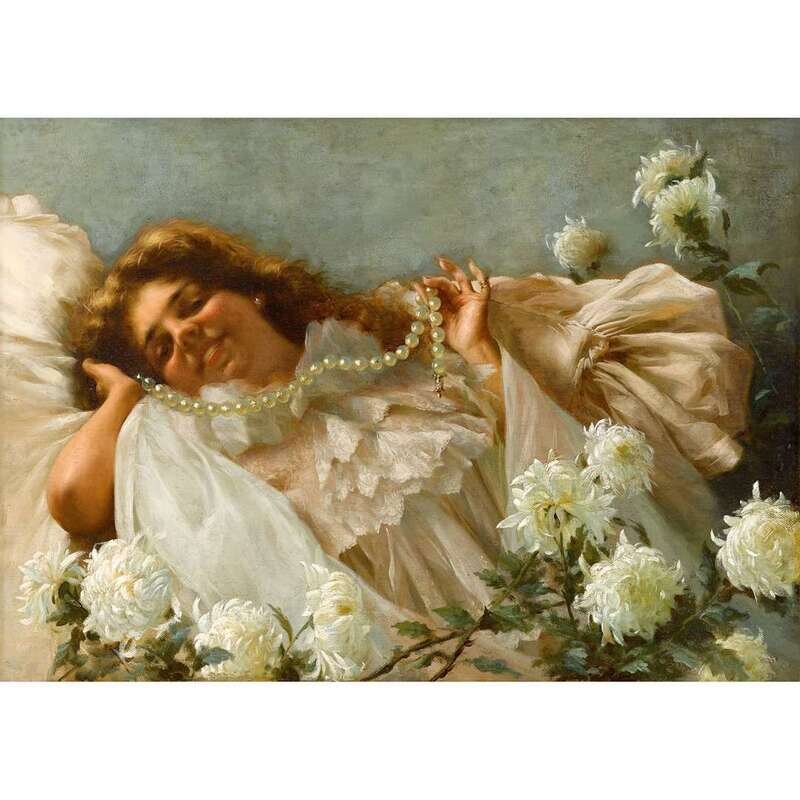 POMPEO MASSANI (ITALIAN 1850-1920) WOMAN WITH PEARLS