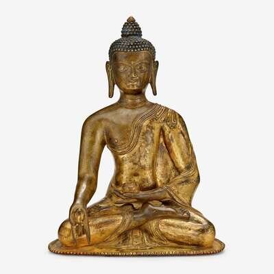 A Chinese gilt bronze medicine Buddha 16th/17th century
