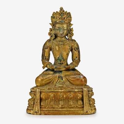 A Chinese gilt bronze and jewelled bodhisattva seated in dhyanasana qing dynasty