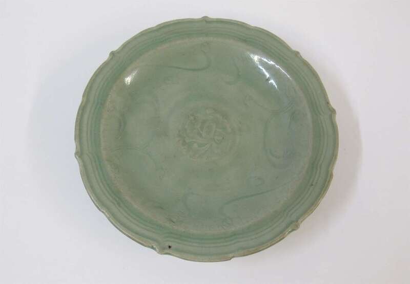 A Chinese longquan celadon floral incised plate ming dynasty