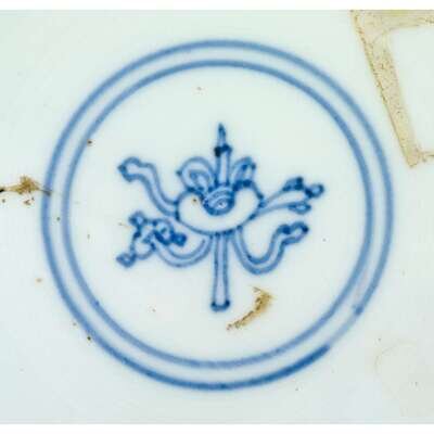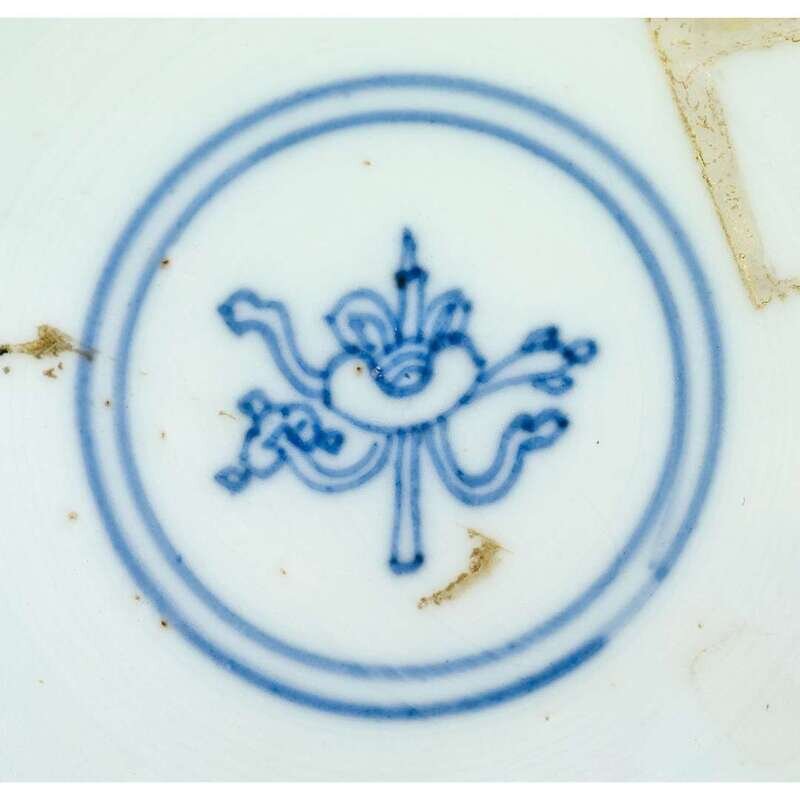 A small Chinese blue and white porcelain dragon plate biding rui mark, kangxi period