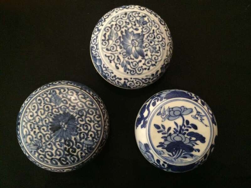 Three Chinese blue and white porcelain boxes and covers kangxi period